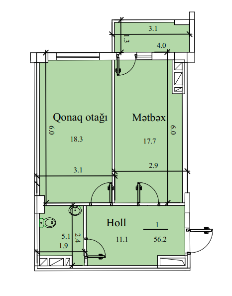 » 1 otaqlı